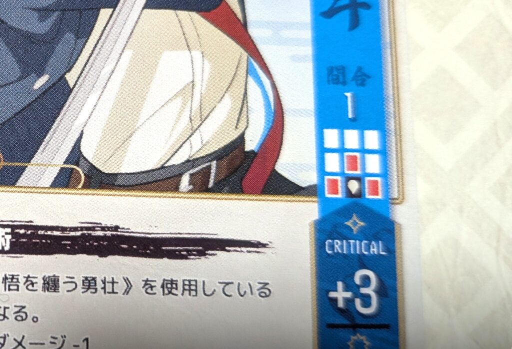 クリティカルは、キャラクターカードに書かれている「間合い」のマスに相手プレイヤーがいるときに発動します。
