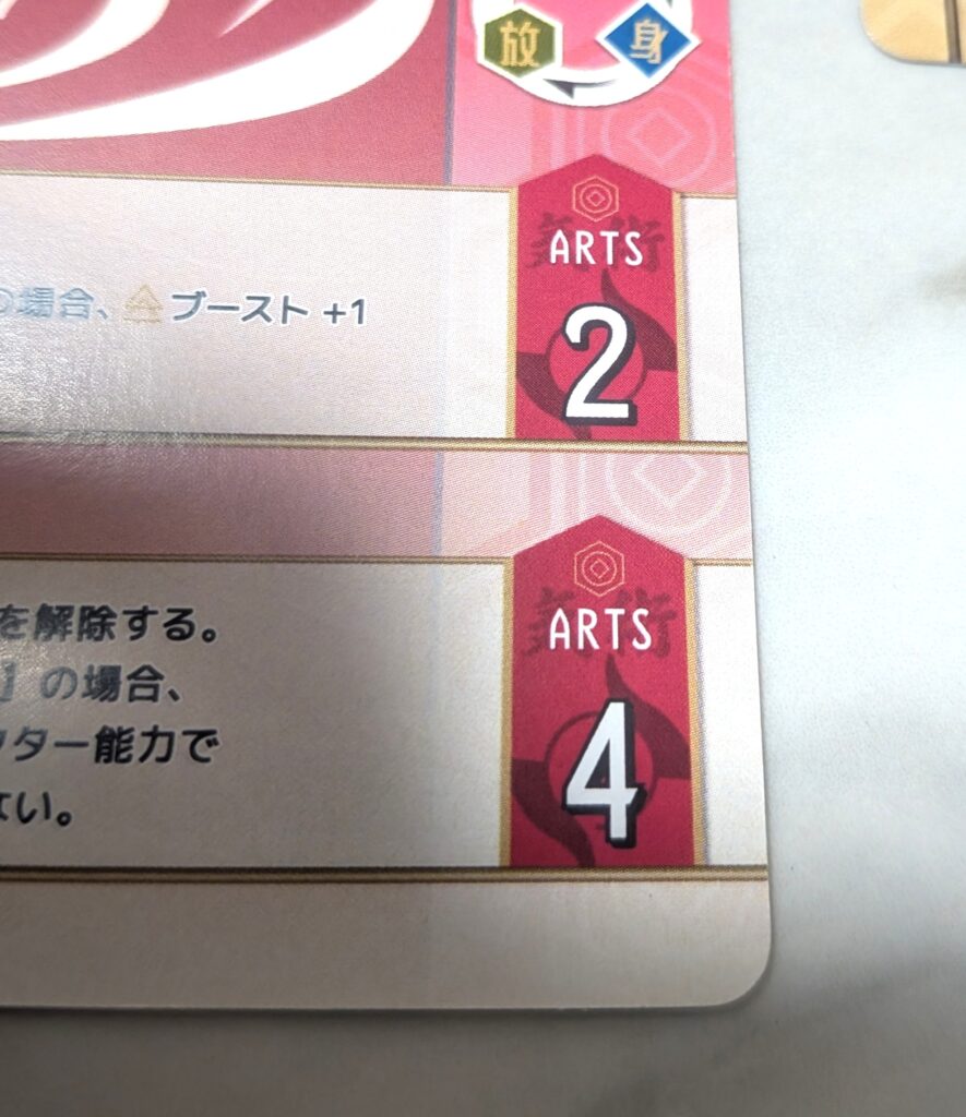 カードに書かれた条件を満たすことで、アーツの値が増えます。