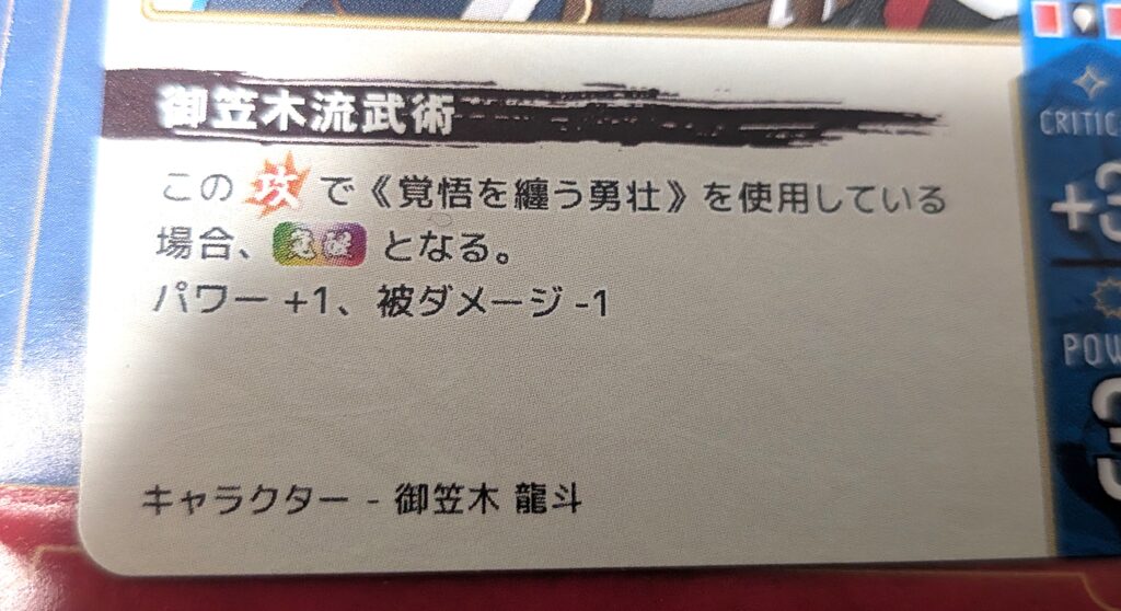 主人公「御笠木 龍斗」の場合は、射程1以内に敵キャラクターがいる場合、クリティカル判定でクリティカルが「+3」されます。
