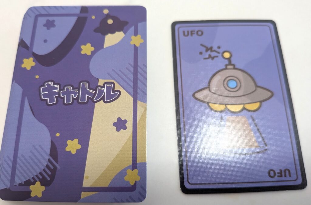 UFOのキャトルをテーマにした熱い読み合いで、テンポよく盛り上がるボードゲームになっています。
