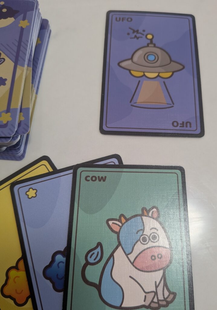 UFOカードも、牛カードがなければ即ゲームオーバーになるという中々のルールで、カードをめくるドキドキ感を生み出し、ただ抵抗むなしく早々に脱落していく人も出てきます(笑)。