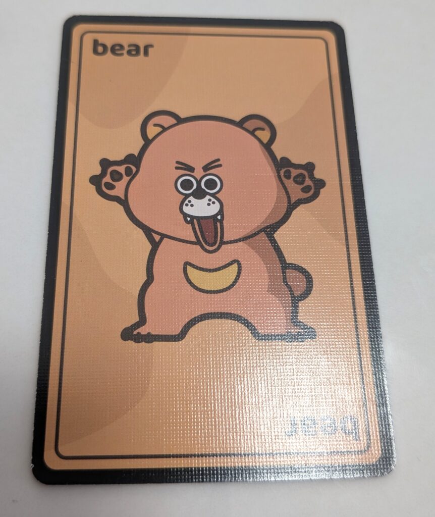 クマカードは、手札から捨て札になった際に効果が発動し、プレイヤー1人の手札を捨て札にして5枚引き直しさせます。