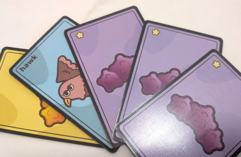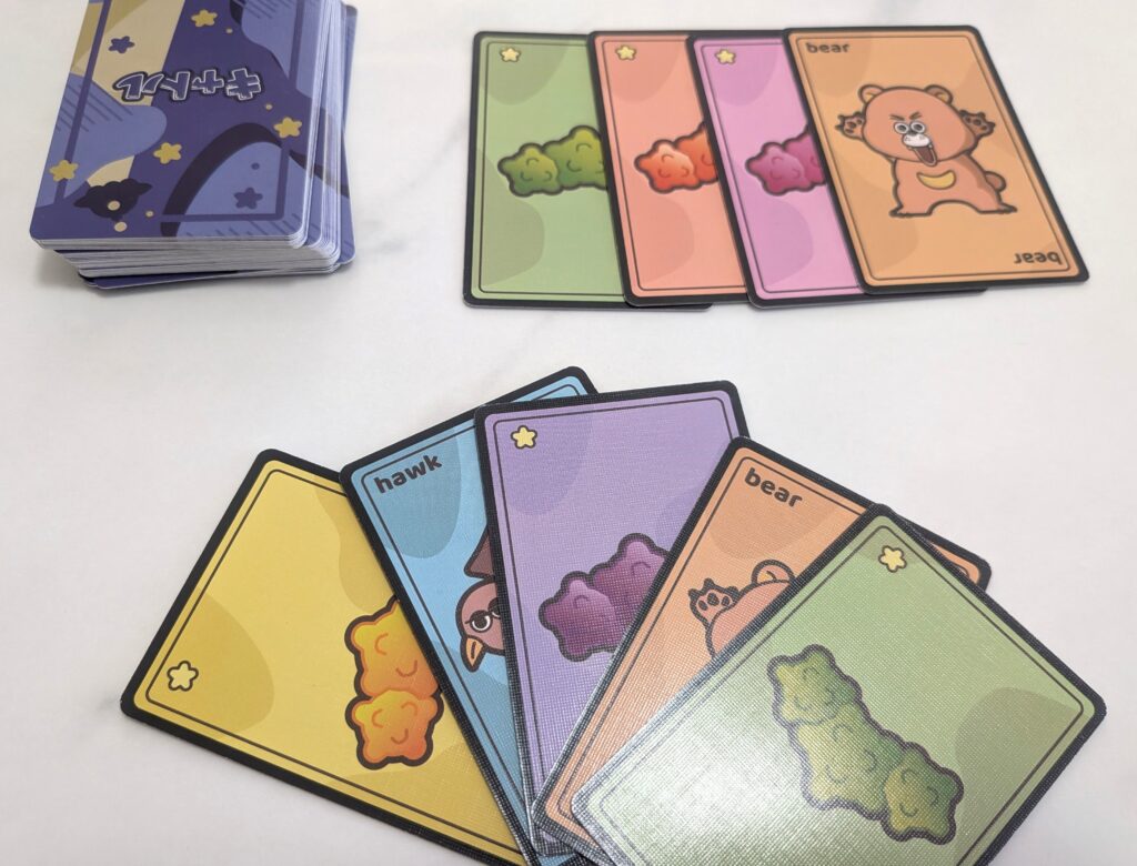 2~5人まで遊ぶことが出来ますが、ゲームの性質上、プレイ人数が多いと手札が変わるは脱落者が続出するはゲーム展開がカオスになり、一方でプレイ人数が少ないと読み合い重視のガチ依りなゲーム展開になります。
