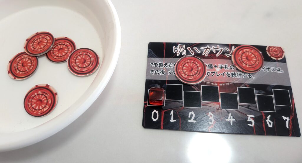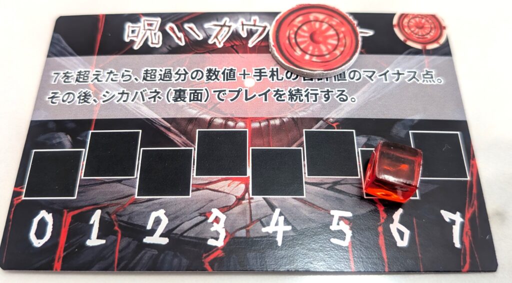 プレイヤーの耐久力は7です。これを超える「呪い」を受けた場合「シカバネ」となります