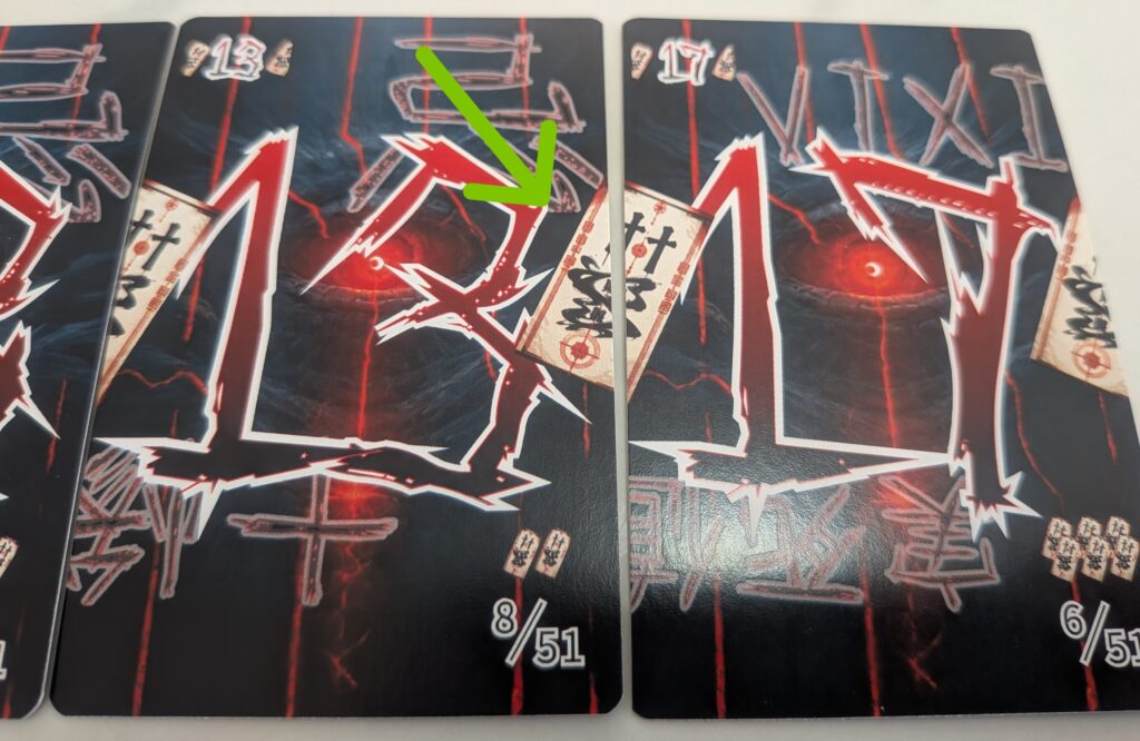 カードの隣接部分に「割札」が完成した場合、その列で「規則」を守らなくても呪いを回避可能になります。