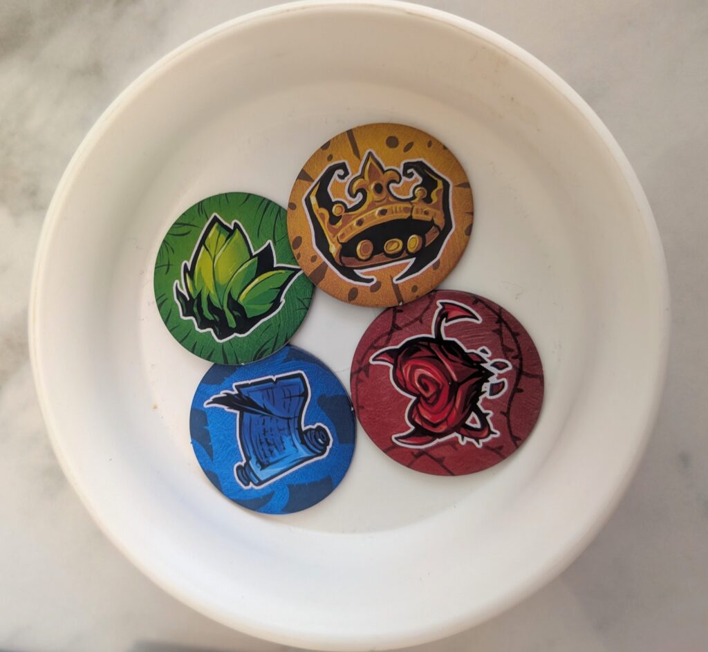 ここまででも十分なルールなのですが、切り札的存在の「コイン」を各プレイヤー2枚ずつ持っています。