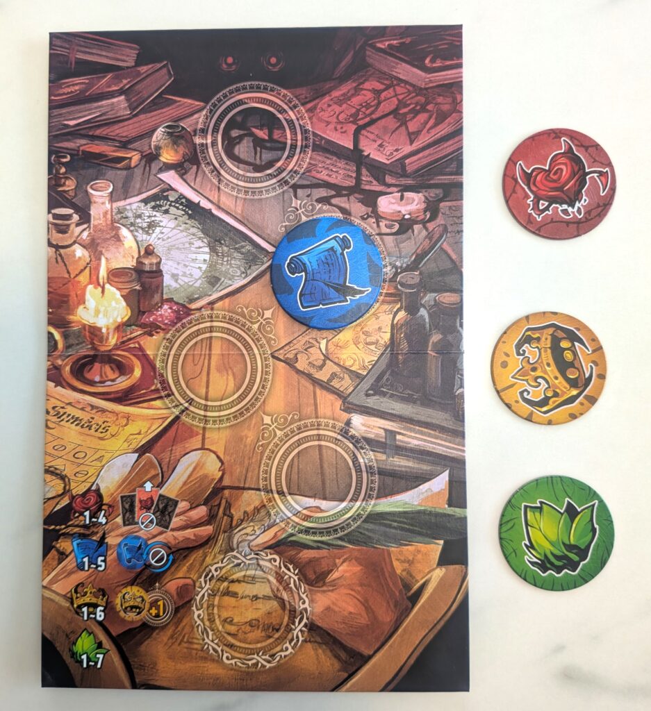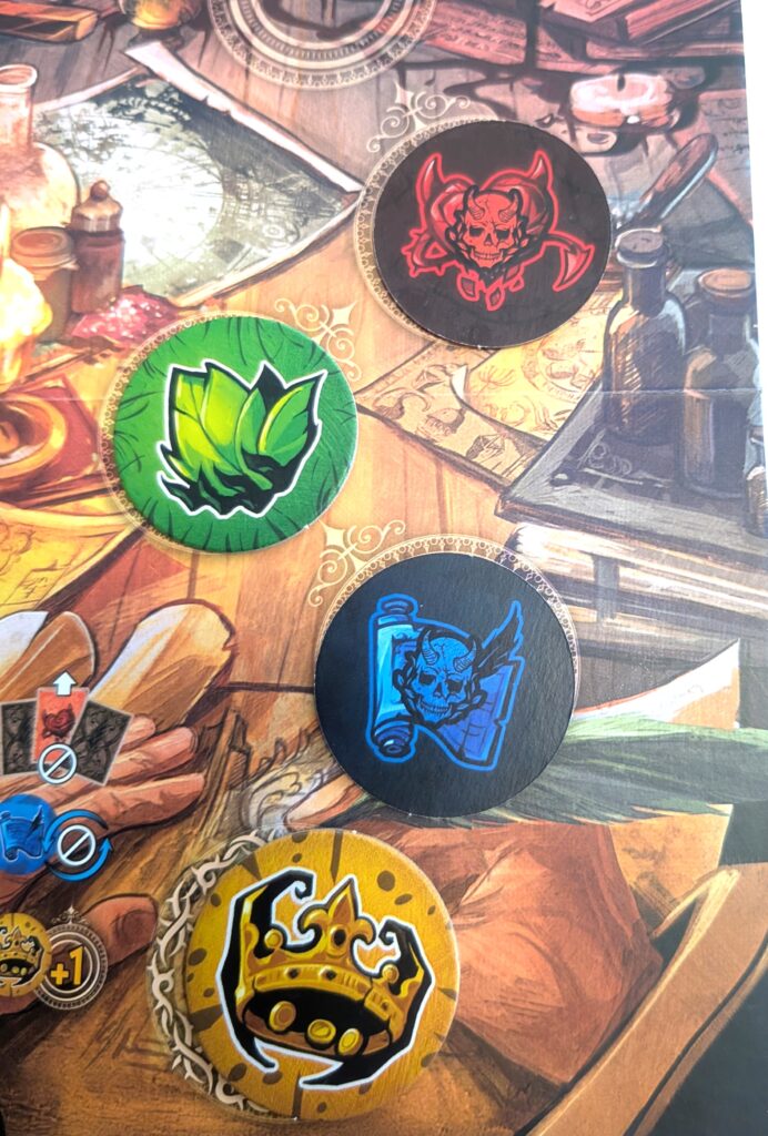 「非対称の勝利条件」「スートの強弱」「ランダム性」「コイン」「フレイバー」など、コンパクトサイズのゲームながら、随所に細かく楽しくなるポイントがちりばめられています。