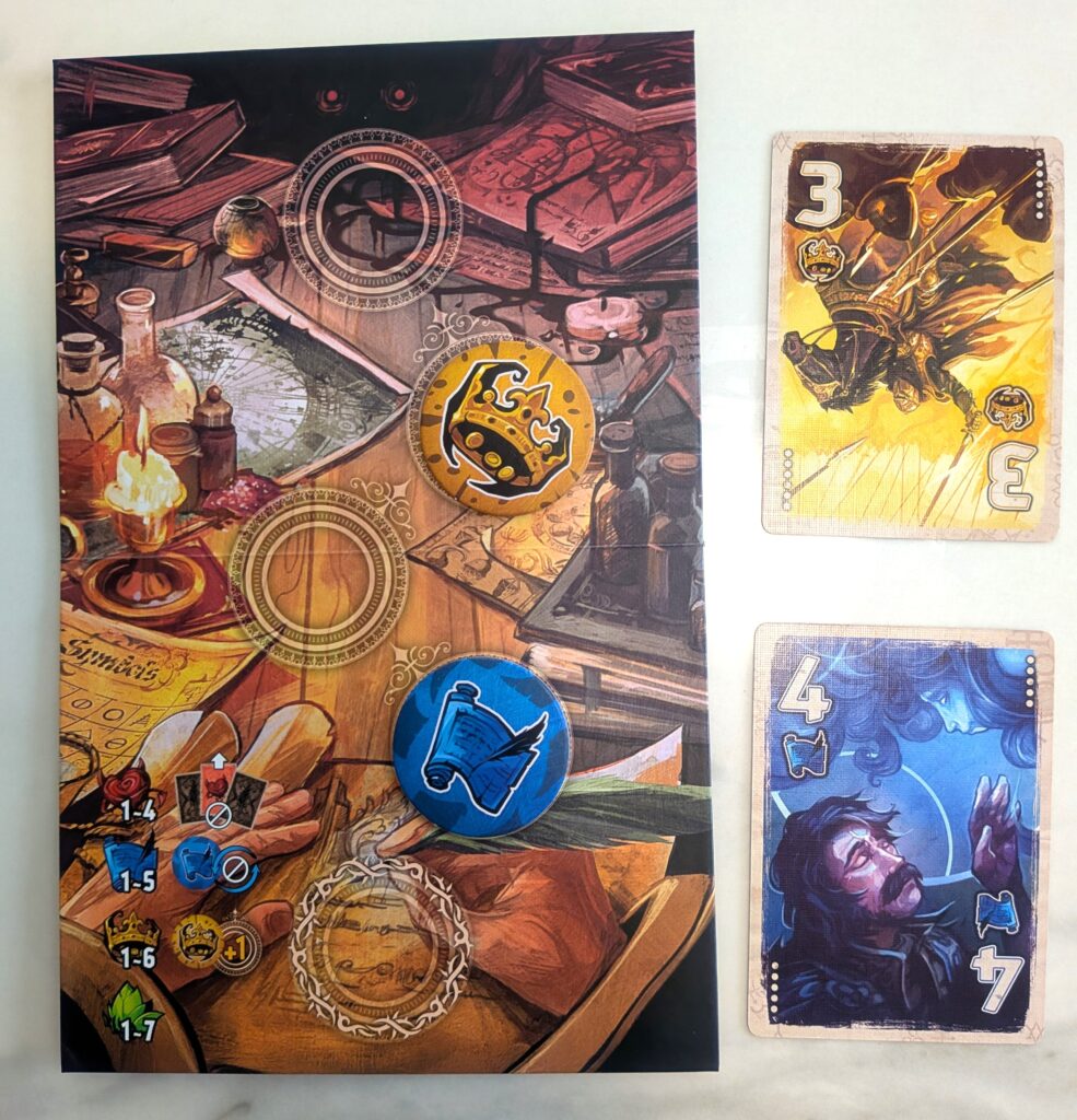 例えば、ファウストが青の知識のカードを全て取ってしまった場合、メフィストの勝利が近づきます。
