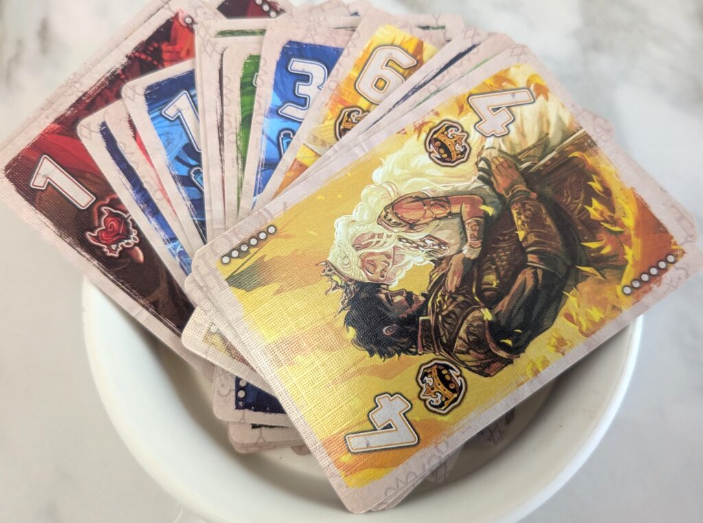 私はあまり2人専用トリックテイキングゲームを遊んだことが無いのですが、本作はランダム要素もありつつも、かなり戦略的で中毒性のある楽しさで、何度も繰り返し遊んでしまいました。