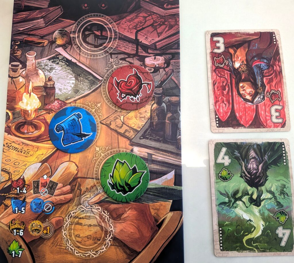 2人専用のトリックテイキングゲームで、非対称の勝利条件を満たすために、如何に自分の狙い通りのトリックを獲得し・不要なトリックを押し付け合うか戦略的なゲームとなっています。