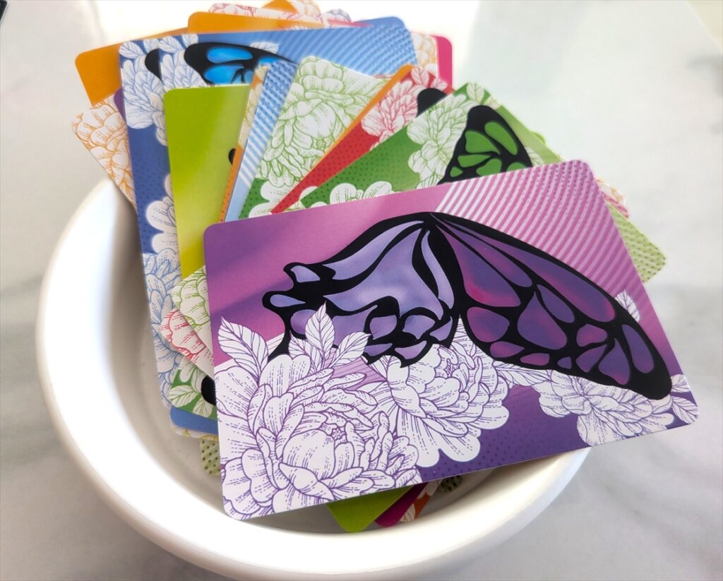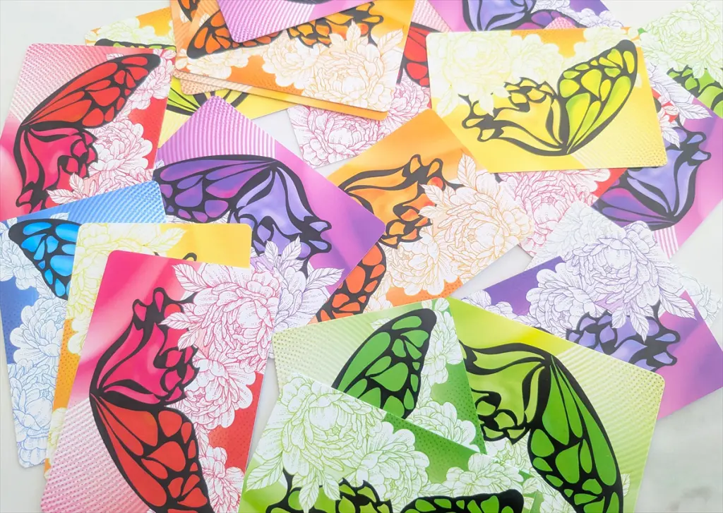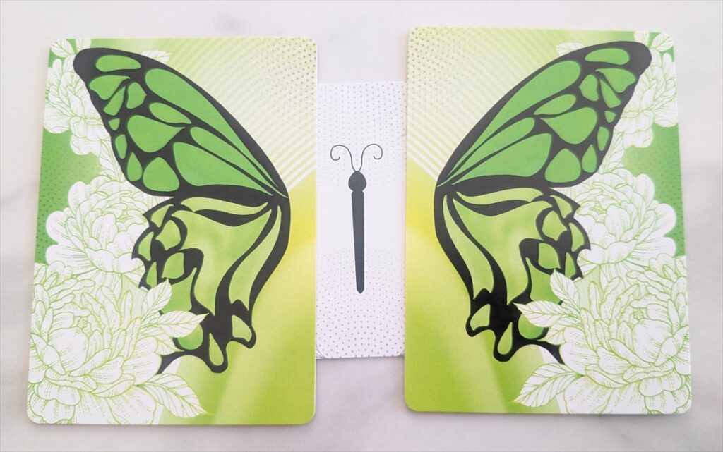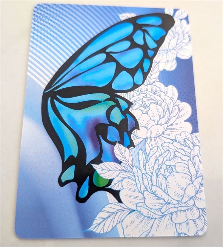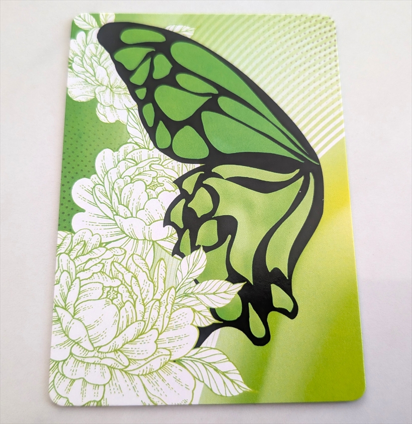 獲得した2枚の羽カードを使い、同じ色の羽カードが両翼で揃えば、見事に蝶々の完成です。