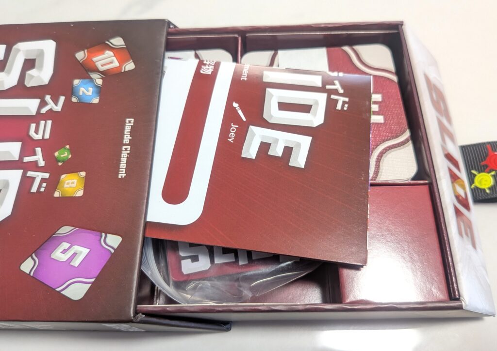 その名の通りカードを「スライド」させていく、パズルと読み合いのボードゲームになっています。
